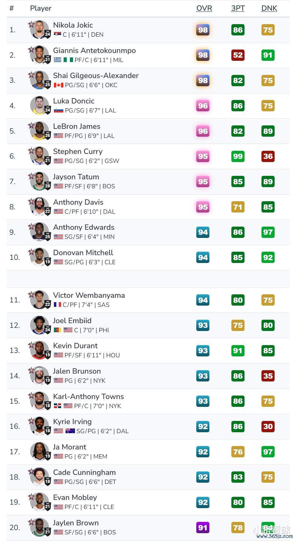 实际上,即使已经40岁了,高清直播詹姆斯依旧是全联盟最好的球员之一,如果将一场赛事 的时间压缩在20分钟左右,那么他依旧是全联盟最具统治力的球星之一,但赛事 毕竟是48分钟,常规赛有82场,这使得詹姆斯不得不开始转型,并且接受湖人二当家的角色,当然在2K游戏看来,48岁的詹姆斯依旧拥有和东契奇相当的个人能力。今日,美媒Basketball Forever更新社交媒体,晒出一则有关2K评分的讨论。其配图发文:“詹姆斯与东契奇在NBA2K的评分中均为总评96。”