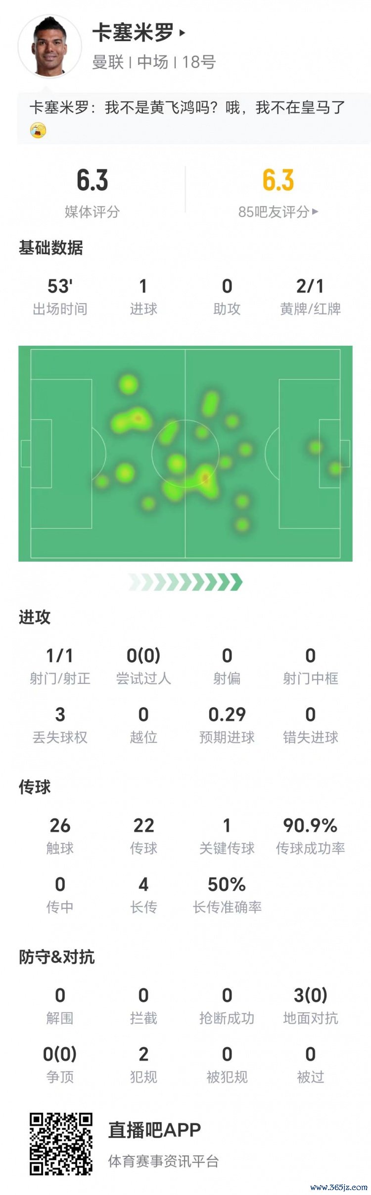 数据统计数据显示,多特蒙德卡塞米罗1射1正打进1球, 篮球新闻在线直播3次丢失球权意甲赛程, 羽毛球资讯22次传送球 有1次关键传送球 ,但他3次地面对峙 均没能成功。