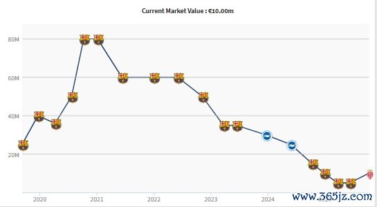 这也是法蒂近5年来首次身价上涨,在5年前他的巅峰期 身价曾达到8000万欧, 篮球新闻足球直播吧随后一路下滑至500万欧。
