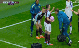 赛事 第47分钟,丹索本方危险区域 内解围后踩到迪涅小腿,后者痛苦倒地,