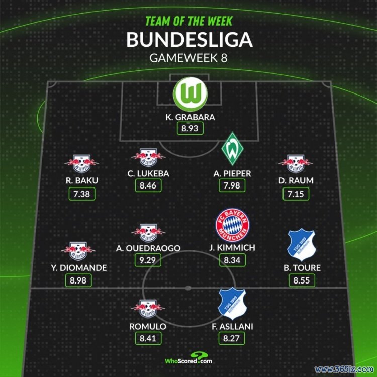 whoscored德甲本轮最佳阵:韦德拉奥果领衔莱比锡6将,基米希在列