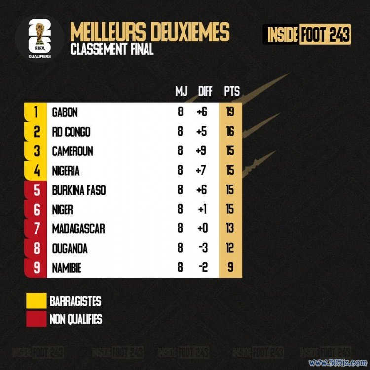 羽毛球资讯尼日利亚比布基纳法索多一个净胜球,从而成为四个成绩最好的小组第二名球队(去掉与小组最后一名交手成绩),锁定附加赛资格。