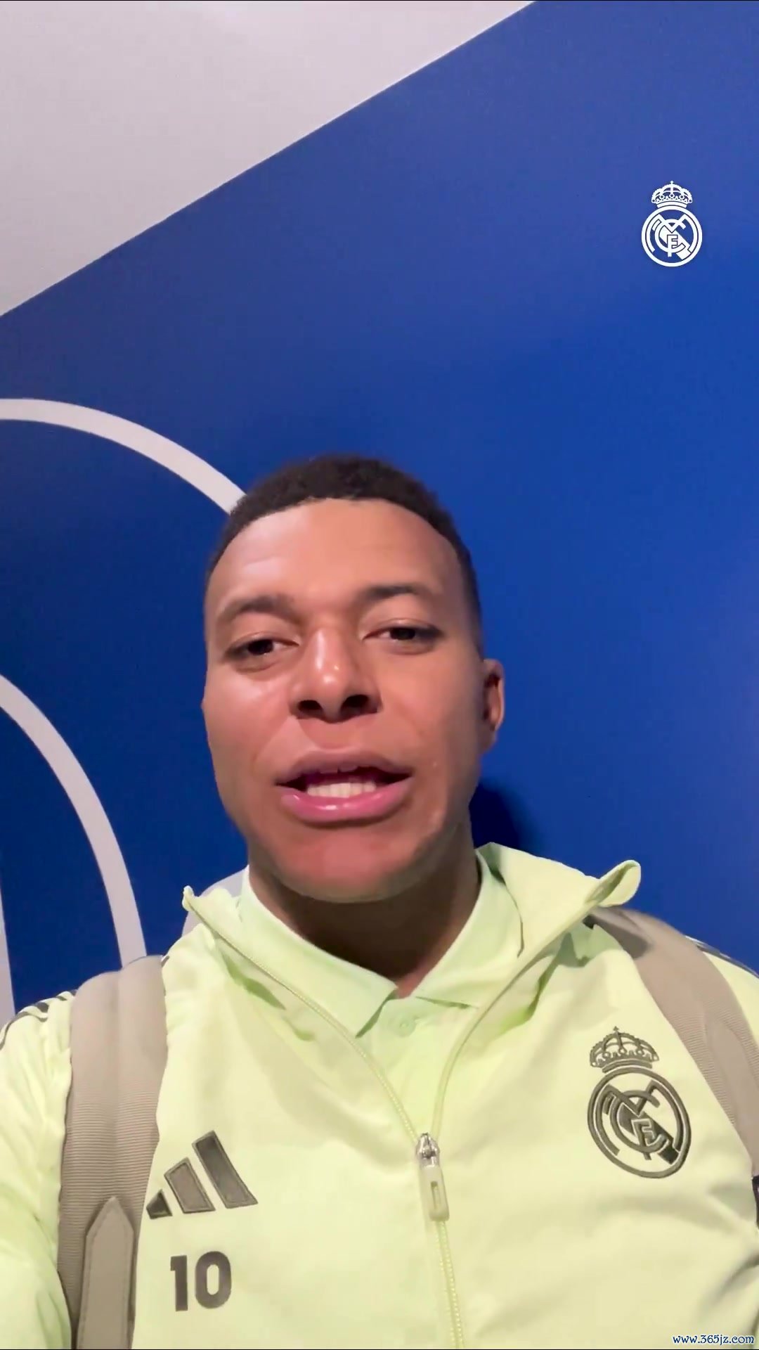 10月20日讯 西甲第9轮比赛,姆巴佩攻入全场唯一进球,帮助皇马客场1-0击败赫塔费,赛后他录制视频寄语球迷。