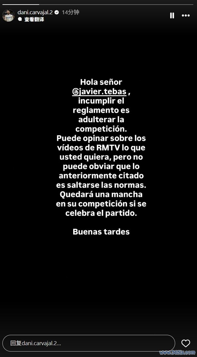 卡瓦哈尔:你好,特巴斯先生。违反规定就是玷污比赛。你可以对此前皇马TV发布的视频发表你想要说的任何意见。但你不能否认之前所提到的内容(海外赛)就是违反了规则。如果进行海外赛,多特蒙德你的比赛就会有污点。