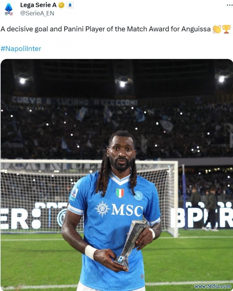 长途奔袭破门,意甲官方:安古伊萨当选那不勒斯3-1国米全场最佳
