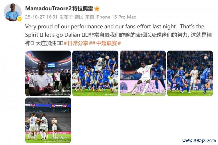 赛后,马马杜-特拉奥雷在社媒写道:“非常自豪我们昨晚的表现以及球迷们的努力, 篮球新闻 这就是精神!大连加油!”