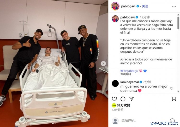 9月25日讯 今日加维更新社媒,晒出自己手术后队友前往医院探望的合照,并配文: