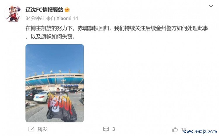 9月24日讯 据博主“辽沈FC情报驿站”消息,辽宁铁人球迷组织“赤魂”已经拿回旗帜。