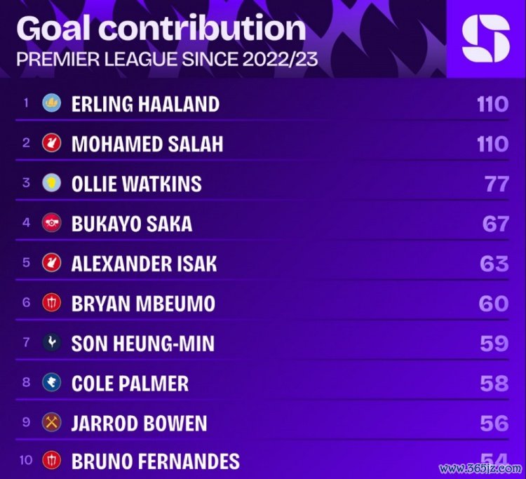 据Squawka的数据统计 ,多特蒙德自哈兰德加盟曼城以来, 篮球新闻高清直播他已经在英超职业联赛 直接加入 110粒得分 , 羽毛球资讯同期没有哪名球员比他更多,只有萨拉赫同样加入 110粒得分 与他持平。