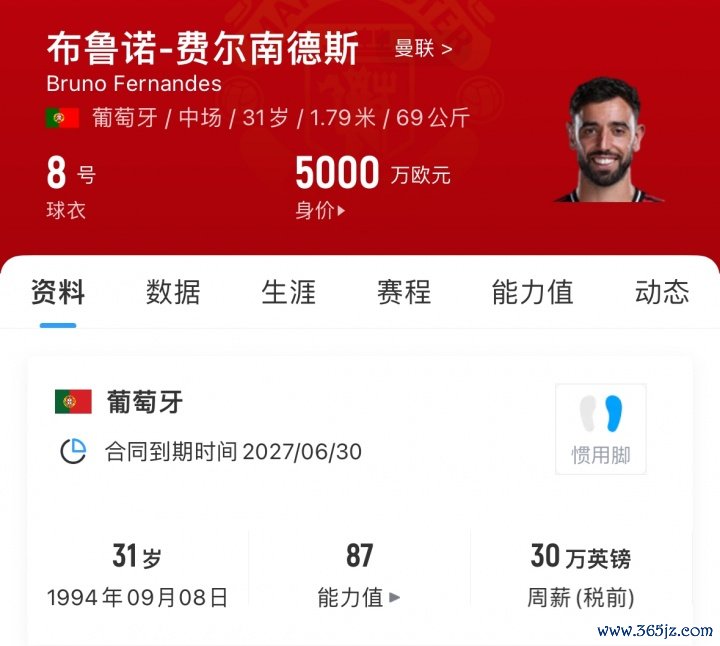 B费现年31岁,他与曼联的合同到2027年到期,多特蒙德他现身价5000万欧,