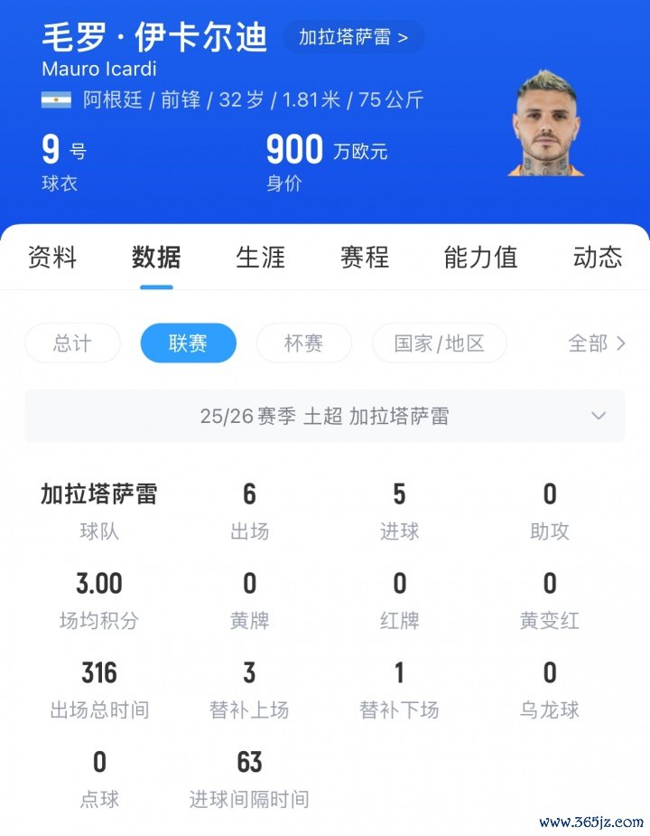 目前32岁的伊卡尔迪德回转 价900万欧,他巅峰期 身价曾在效力国米期间达到1亿欧。