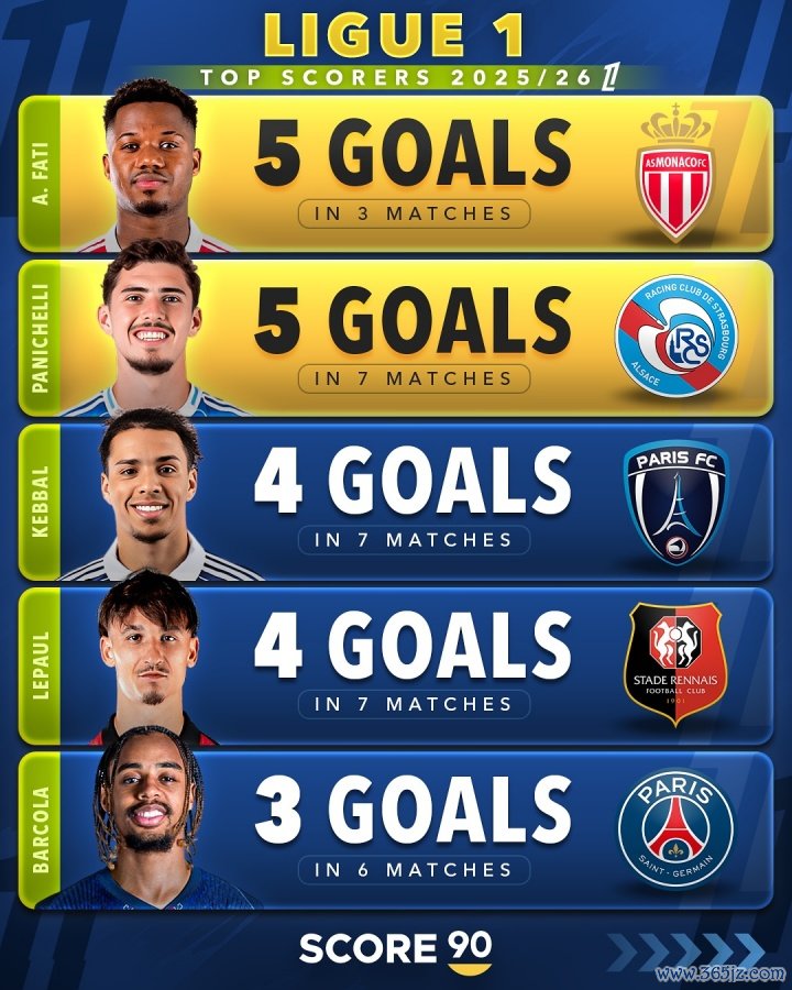 五大职业联赛 射手榜:凯恩11球一骑绝尘,哈\姆9球,法蒂法甲并列第一