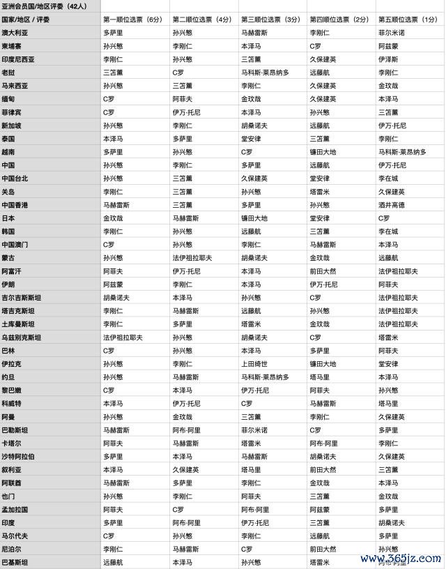评选范围: (1)有资格为亚足联旗下足协代表队参赛的球员 (2)在亚足联旗下足协所辖职业联赛 所效力的球员。
