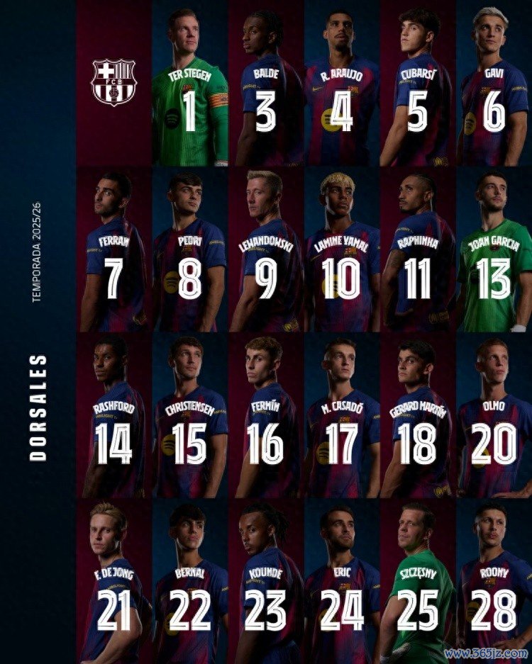 巴萨一线队号码: 特狮1号、卡萨多17号、马丁18号、巴德吉28号