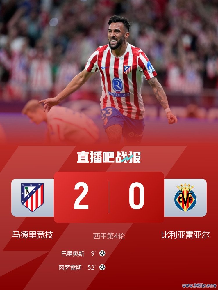 职业联赛 首胜! 马竞2-0比利亚雷亚尔 巴里奥斯闪击冈萨雷斯首秀破门