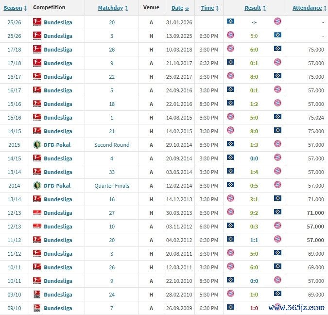 根据赛后统计, 羽毛球资讯汉堡此役只有2次射正,而拜仁则是9次射正,在线直播射球 数更是高达22次,数据对比如此悬殊,0-5的比分也就不意外了。值得注意的是,汉堡对阵拜仁已经9连败了。并且20场不胜,其中还包含多场大败 ,两次0-8、1次2-9、4次0-5、2次0-6,总比分7-76。