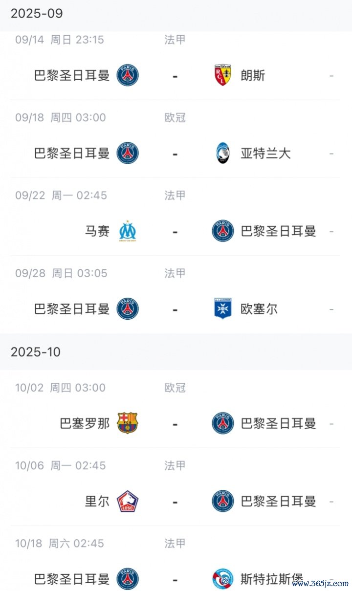 巴黎未来赛程如下,登贝莱无缘出战10月初对阵巴萨的赛事 :